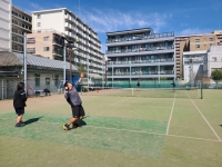 初戦の江東商業戦は、立ち上がりこそ緊張していたもののその後は落ち着いてプレーをすることができ、勝利することができました。次戦の東大付属戦は、敗れてしまいましたが、小川・神馬(3年)のペアは普段以上の力を発揮し、今後の自信にしていってもらいたいと思います。どしゃぶりの中でのプレーとなり、うまく対応できていない部分が多くあり、悔いの残る敗戦となりました。また今回は、様々な所で準備不足が反省点として挙げられます。次の大会に向けて部一丸となって万全の準備で試合に臨みたいと思います。