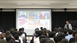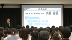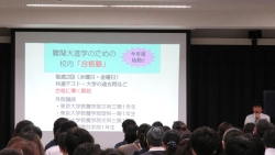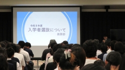 学校説明会の全体会では、校長挨拶、学校概要説明、入学者選抜説明をしました。