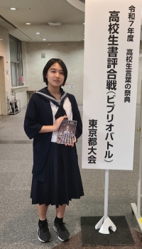 10月19日に令和7年度高校生言葉の祭典「高校生書評合戦(ビブリオバトル)」東京都大会に参加してきました。オススメの1冊を紹介しあう今大会に向けて、約1か月の間におよび発表の準備を続け、本番でも自分の好きな本についてその魅力を存分に伝えることができました。結果は準決勝進出!練習してきたことが形になったこともあり、発表した生徒にとっても自信につながるものとなりました!