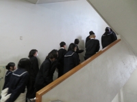 地震・津波を想定し、3階以上に避難する訓練を行いました。お互いに声を掛け合って避難していました。