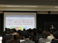 学校説明会の全体会では、校長挨拶、学校概要説明、入学者選抜説明をしました。