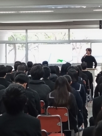 明治大学・青山学院大学・立教大学・中央大学・法政大学の学生から高校生時代の話や大学での生活、これから高校1年生がどのような勉強を積んでいき進学していけばよいのかなどの話がありました。
