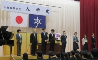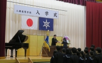 桜が咲き誇る中、夢と希望を持ち、決意も新たに入学式に臨む姿が見受けられました。