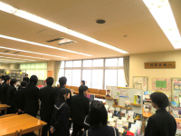 生徒会役員が1年生を誘導しながら、授業や委員会、集会で使用する教室、施設の場所や使い方の説明を行いました。